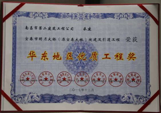 新年伊始,公司項(xiàng)目就迎來(lái)了開(kāi)門(mén)紅。公司承建的宜春市明月大橋改建及引道工程榮獲華東地區(qū)優(yōu)質(zhì)工程獎(jiǎng)。